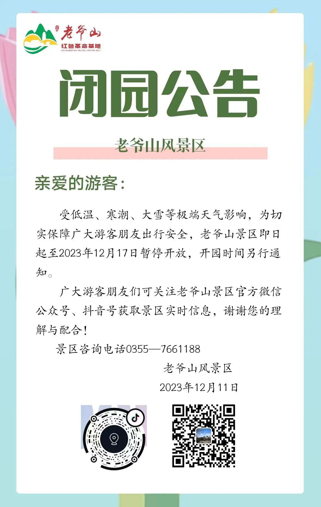 屯留老爷山风景区关于景区暂时闭园的公告