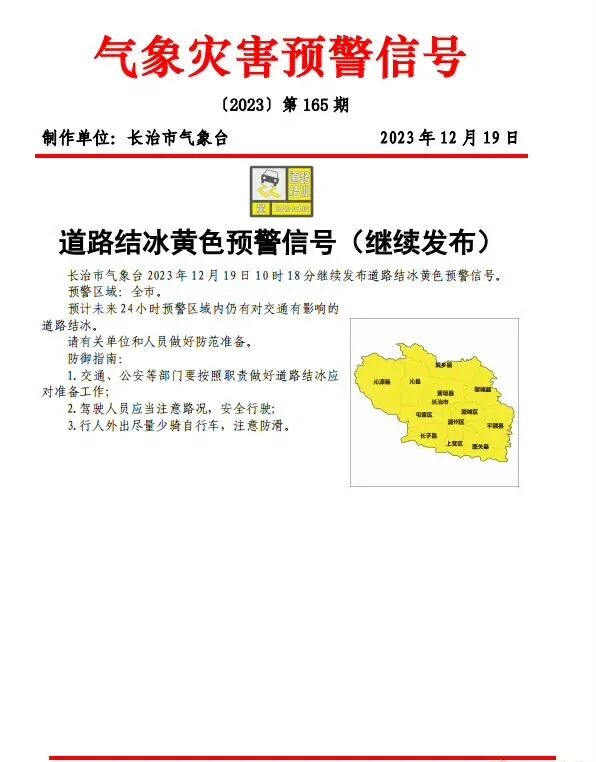 道路结冰黄色预警