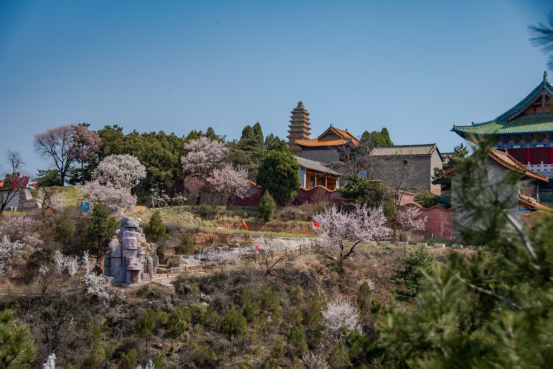 老爷山周边种植了杏花、桃花、迎春花和玉兰花,每年4月-5月,漫山遍野一片嫣红,远远望去,犹如绚丽的彩霞落在山间,在阳光的照耀下,熠熠生辉,构成了一幅绝美的春日画卷。