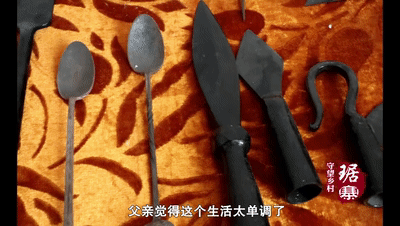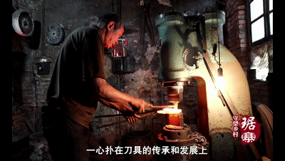 琚寨距铁府荫城不过五里,琚寨的兴盛也与这铁货密不可分。“万里荫城名在外,荷花宝钉数琚寨”,琚寨生产的荷花钉因耐用、不易锈而享有盛名,属当年荫城铁货中的精品。贾家铁器由爷爷贾进财创始,已有百年历史。贾氏三兄弟传承祖业,一心扑在刀具的传承和发展上,历经了四次技术革新。从选料、下料、打坯,到开槽、夹钢、煅坯、再到磨刀、打钢印、装套,整套工序下来达三十多道。
