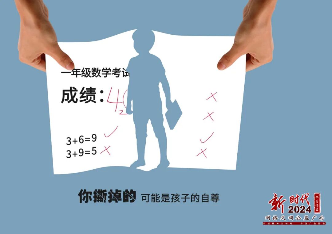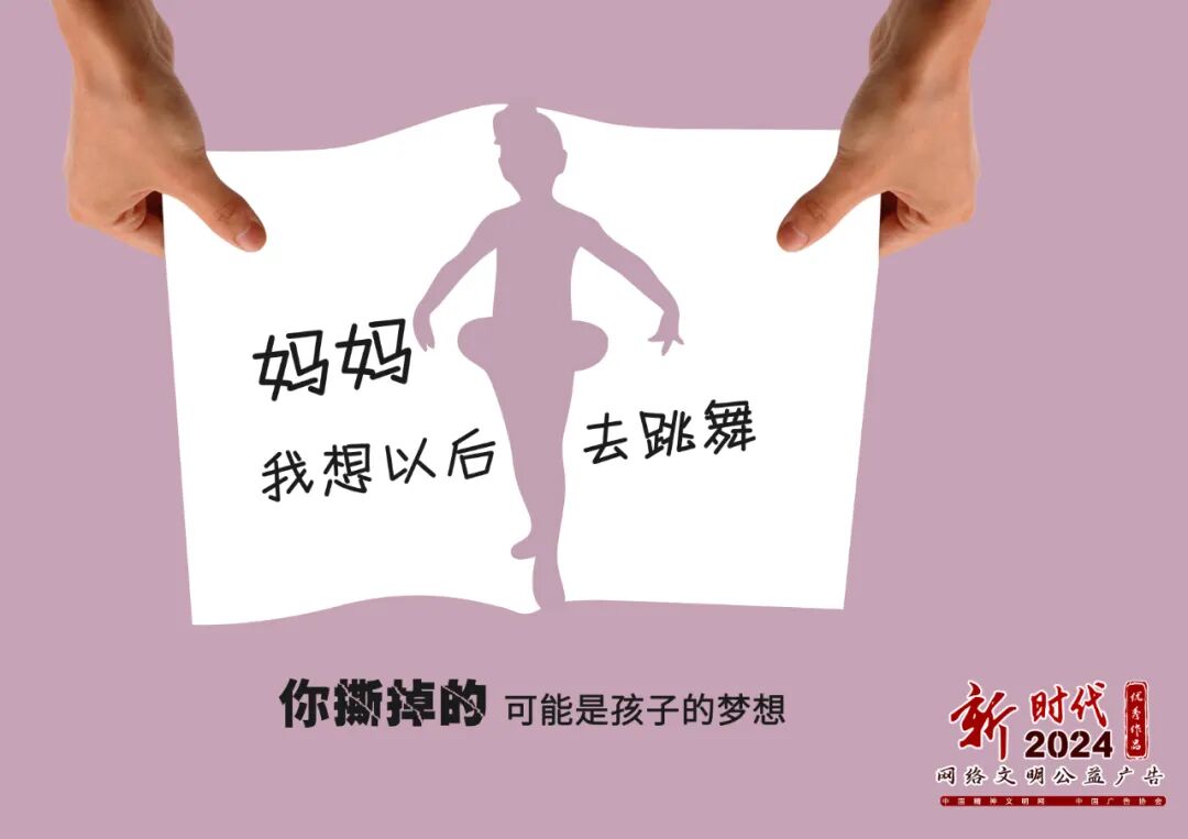 弘扬主流价值、传播文明理念、传承中华优秀传统文化、培育时代新风。2024年“新时代网络文明公益广告”征集展示活动优秀作品近日公布,共有50件作品入选。今天给大家分享的是优秀作品《关爱孩子 关心成长》。