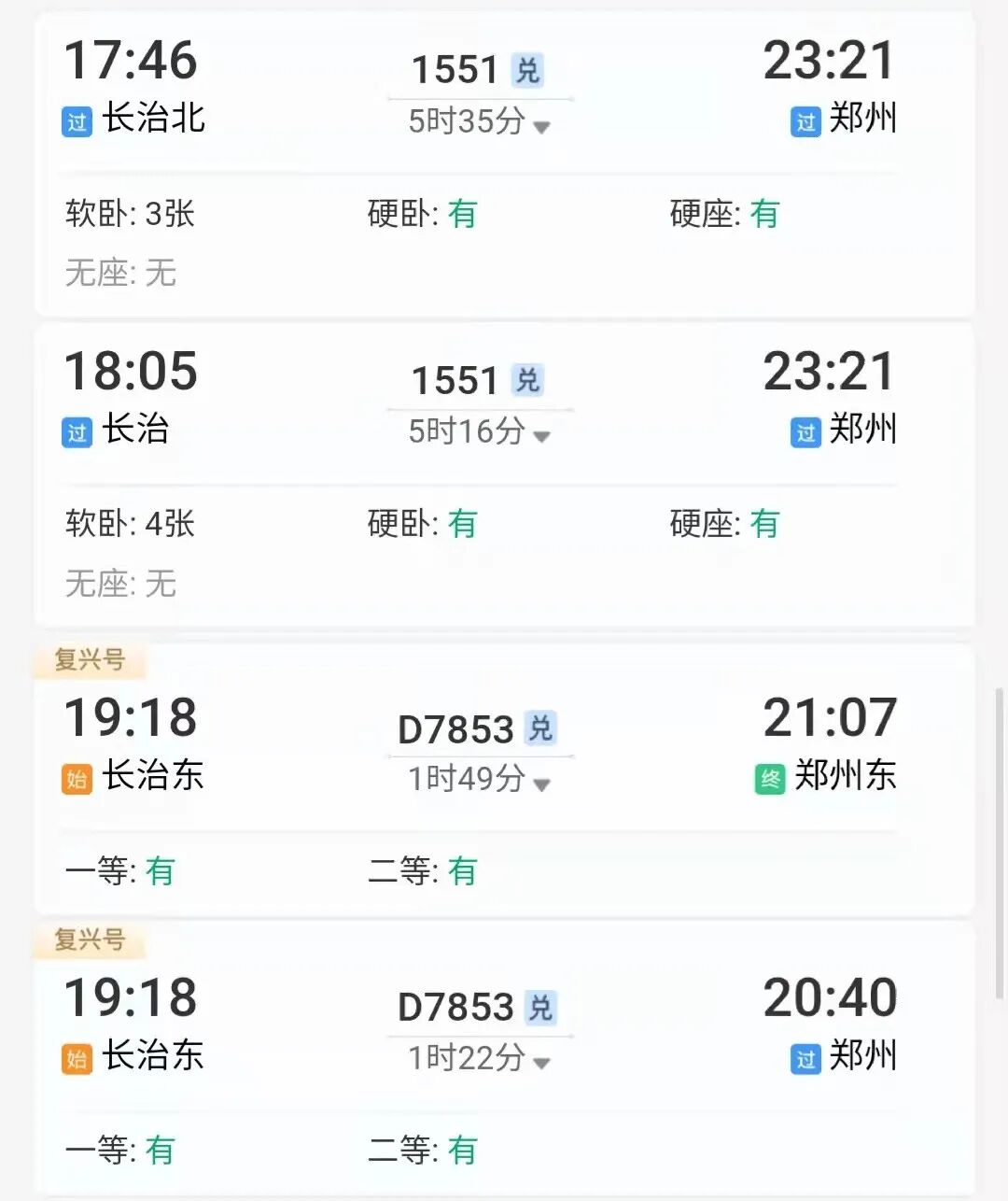 加开多趟夜间列车!附长治到郑州最新列车时刻表