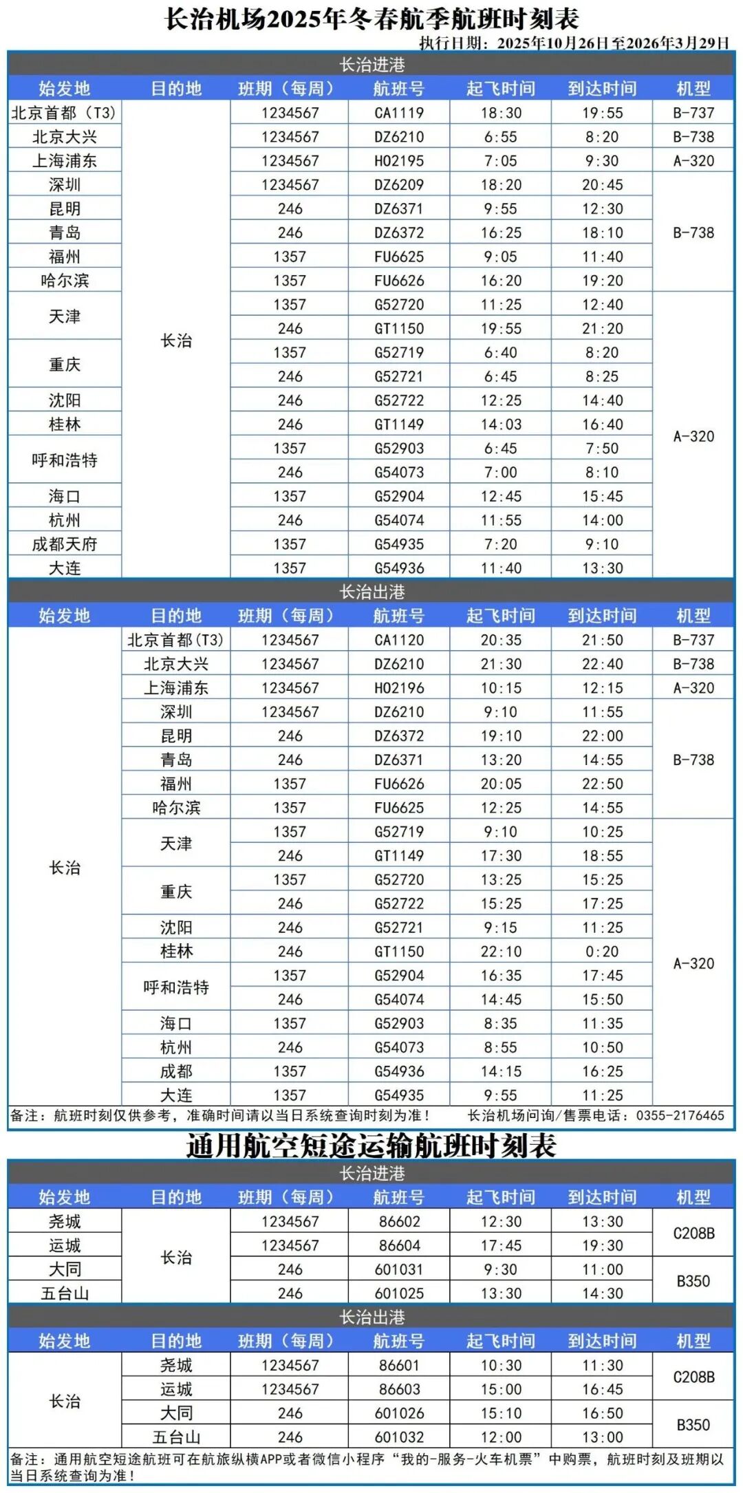 备注:通用航空短途航班,即与尧城、运城、大同、五台山通航的航班,可在航旅纵横APP或者微信小程序“我的-服务-火车机票”中购票,航班时刻及班期以当日系统查询为准!